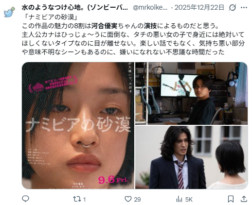 特に分かりやすい演技を好む層にとっては、 河合優実の芝居は「地味」「薄い」と映ることがあるのです。
