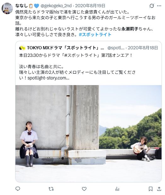 学生役・若者役において、 作られた青春像ではなく「今の空気感」を体現できる点は大きな武器だ。